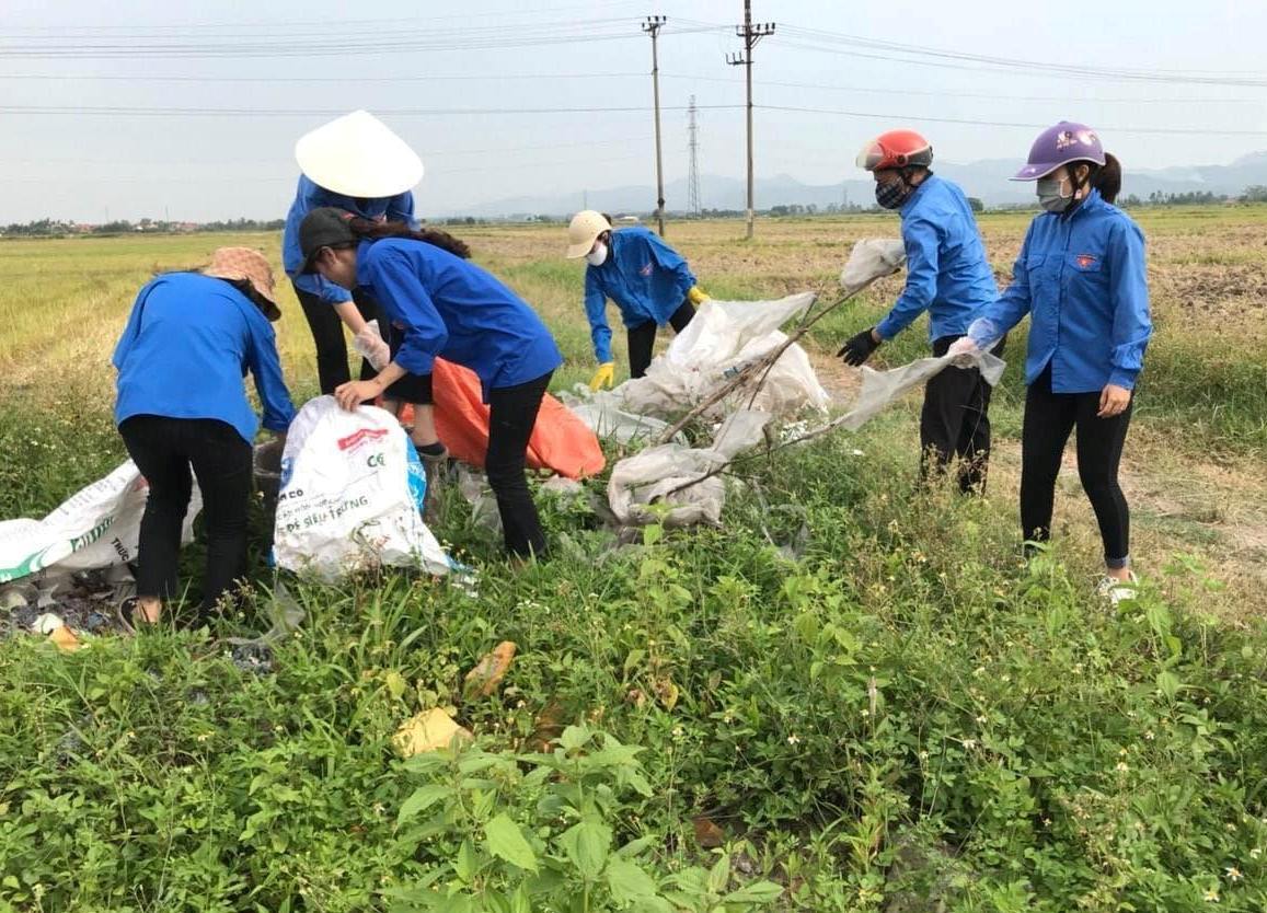Sáng ngày 06/06/2020, Đoàn Thanh niên phường Kim Sơn tổ chức ra quân thu dọn các bể chứa bao bì thuốc bảo vệ thực vật và vỏ bao bì còn rải rác tại cánh đồng thuộc khu Gia Mô