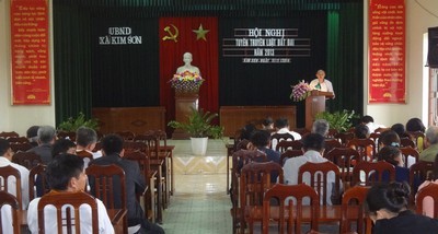 Ngày 11/11/2014 tại hội trường xã Kim Sơn đã tổ chức Hội nghị phổ biến tuyên truyền phổ biến Luật Đất đai 2013 và các văn bản pháp luật có liên quan, cho các đồng chí chủ tịch, phó chủ tịch, các Đ/c trưởng các ban ngành đoàn thể, các tổ chức xã hội, ban chỉ huy các thôn