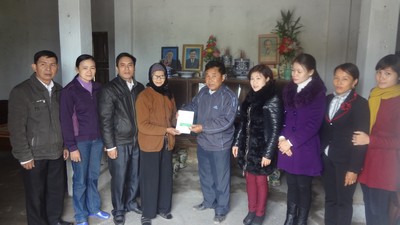 Sáng ngày 04/12/2014 ba trường THCS, TH, MN xã Kim Sơn đến thăm và tặng quà cho em Lê Bảo Châu thuộc hộ nghèo thôn Nhuệ Hổ một sổ tiết kiệm trị giá 10.000.000đ ( mười triệu đồng ).